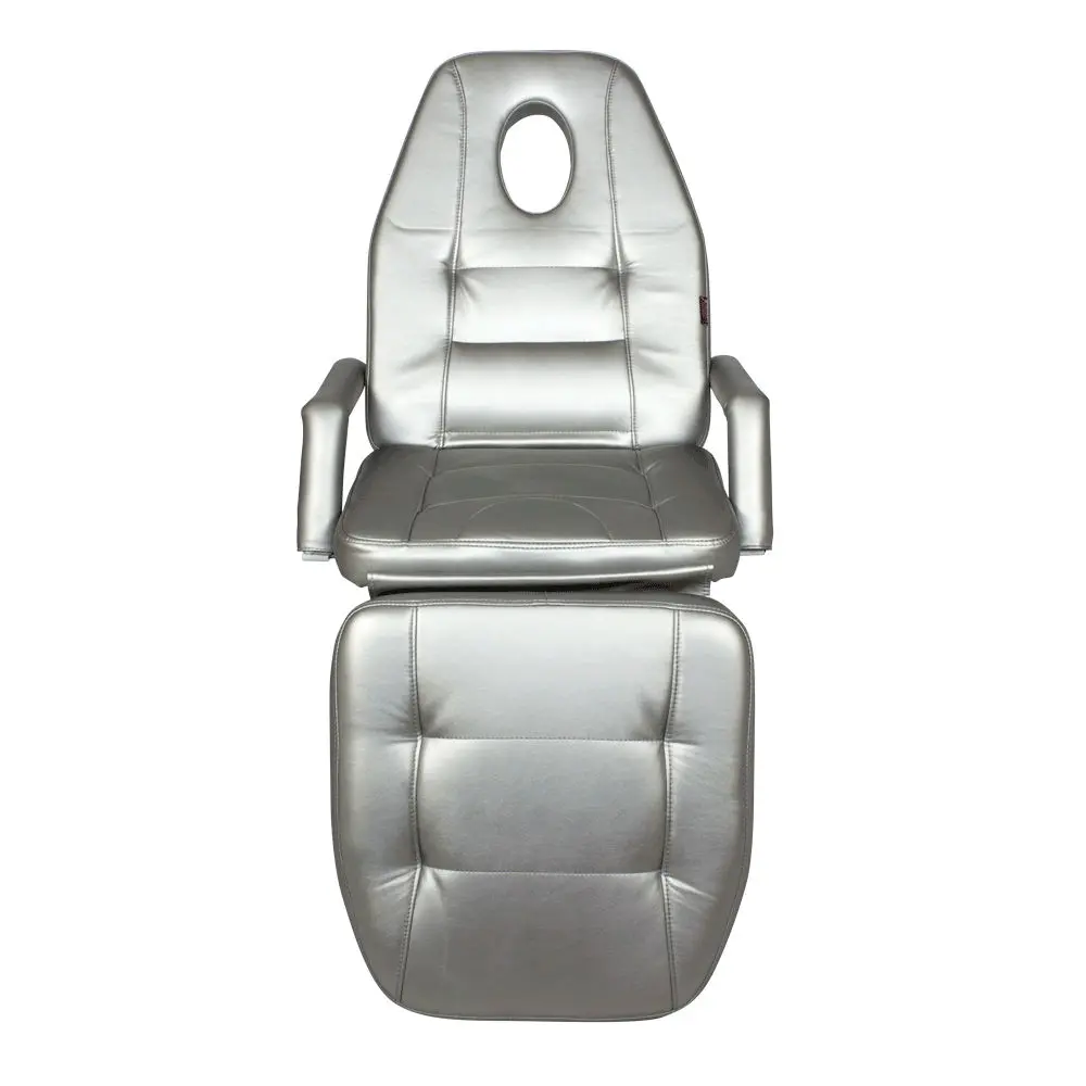 При обустройстве кабинета оборудование должно гармонировать с палитрой интерьера, поэтому мы предлагаем купить косметологическую кушетку Релакс в одном из цветов складкой программы (белый матовый, серебро, слоновая кость), или заказать в другом цвете или комбинации цветов из каталога обивочных материалов. Практичная конструкция косметологической кушетки Релакс от магазина МЭДИСОН позволяет оказывать широкий спектр как косметологических, так и массажных услуг. В спинке имеется отверстие для лица. Положение спинки и ножной части регулируется механически.