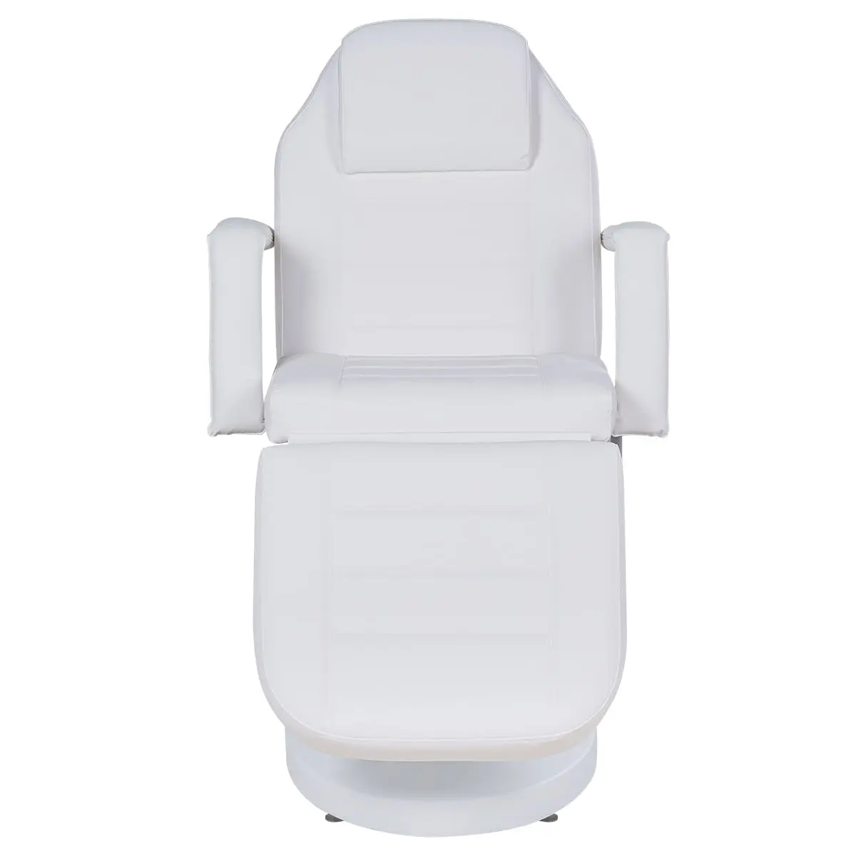 Кресло косметологическое Элегия-03 на колонне (Элегия-2) комплектуется тремя моторами электропривода, которые позволяют быстро и с комфортом для клиента менять положение мягких элементов. Пользуясь регулировками, мастер может трансформировать кресло в горизонтальное положение и использовать его в качестве косметологической или массажной кушетки. Все механические детали аккуратно спрятаны в стильной серебристой колонне. Подлокотники и подушка снимаются. Управление электроприводом осуществляется при помощи удобного пульта, который крепится к каркасу.