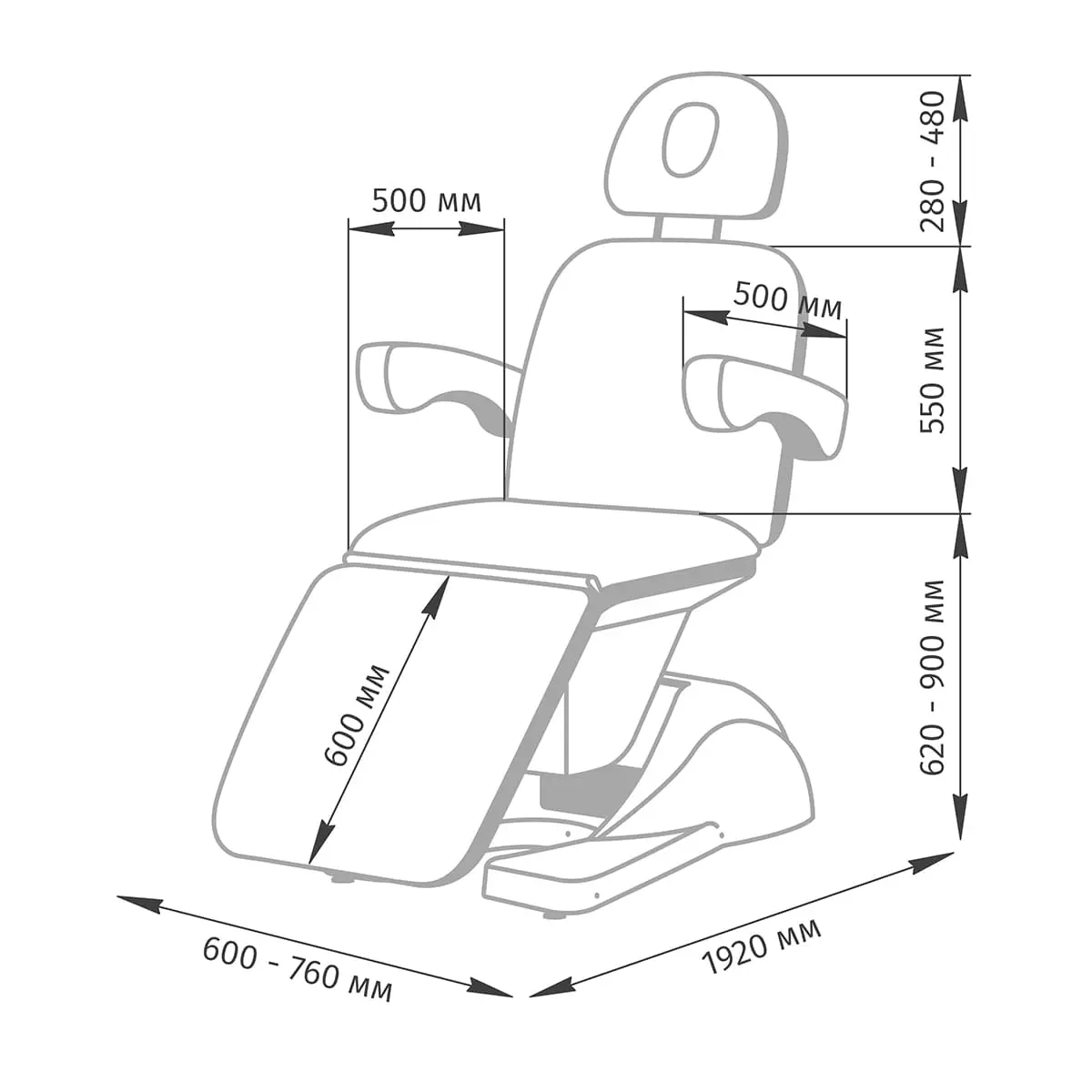 • Длина кресла: 1920 мм
