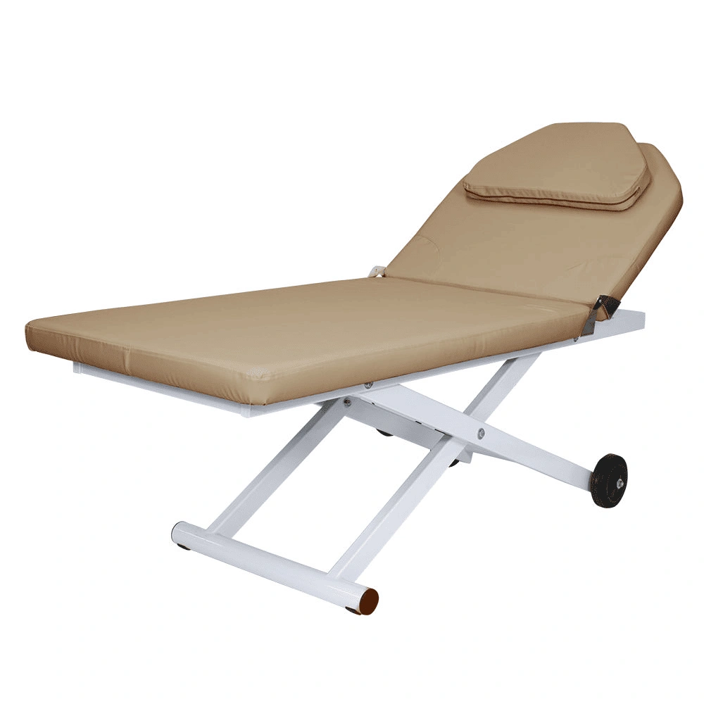 Профессиональная косметологическая кушетка МД-3329 Серебро позволит массажисту выполнять различные виды массажа с комфортом для клиентов. Она произведена из качественных материалов с учетом современных требований к массажному оснащению. Модель МД-3329 имеет прочный металлический каркас, который с одной стороны установлен на подпятниках, а с другой – на колесах. Такая конструкция обеспечивает устойчивость кушетки, а также позволяет легко перемещать и поворачивать ее при необходимости. Кушетка комплектуется электроприводом с одним мотором, при помощи которого мастер сможет без дополнительных усилий регулировать высоту, не прерывая рабочий процесс.