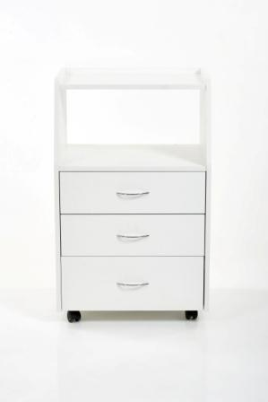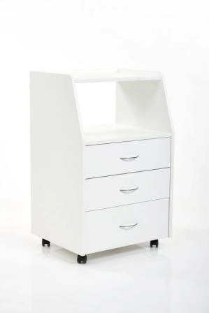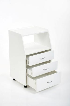 Многофункциональная передвижная тумба Бьюти комплектуется тремя удобными ящиками и открытой полкой, что позволит мастеру без труда убирать необходимые инструменты, в ящиках достаточно места, чтобы разложить приспособления мастера. Полка предназначена для установки аппаратов или принадлежностей первой необходимости. Перемещать косметологическое оборудование можно с помощью вращающихся колес.