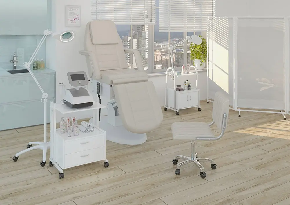 Крепление: лампа-лупа крепится к косметологической тележке или столу.