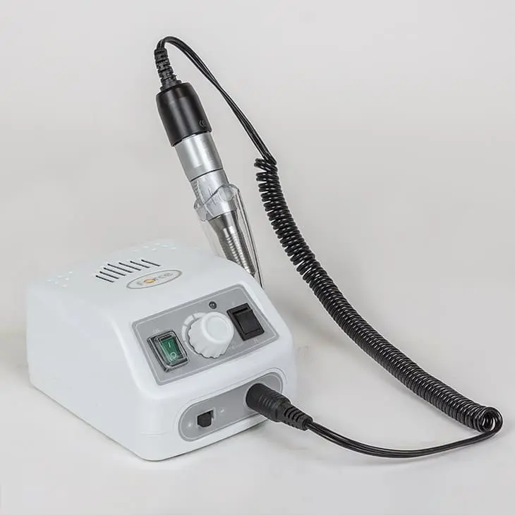 Маникюрный аппарат обладает мощностью в 60 Ватт и достигает 30000 оборотов в минуту. Во время работы ручка фрезера не нагревается благодаря системе охлаждения. Фреза не создает вибраций, что дает возможность сделать идеально ровную поверхность. Легкий вес наконечника и удобная форма предотвратят усталость рук мастера в процессе работы.