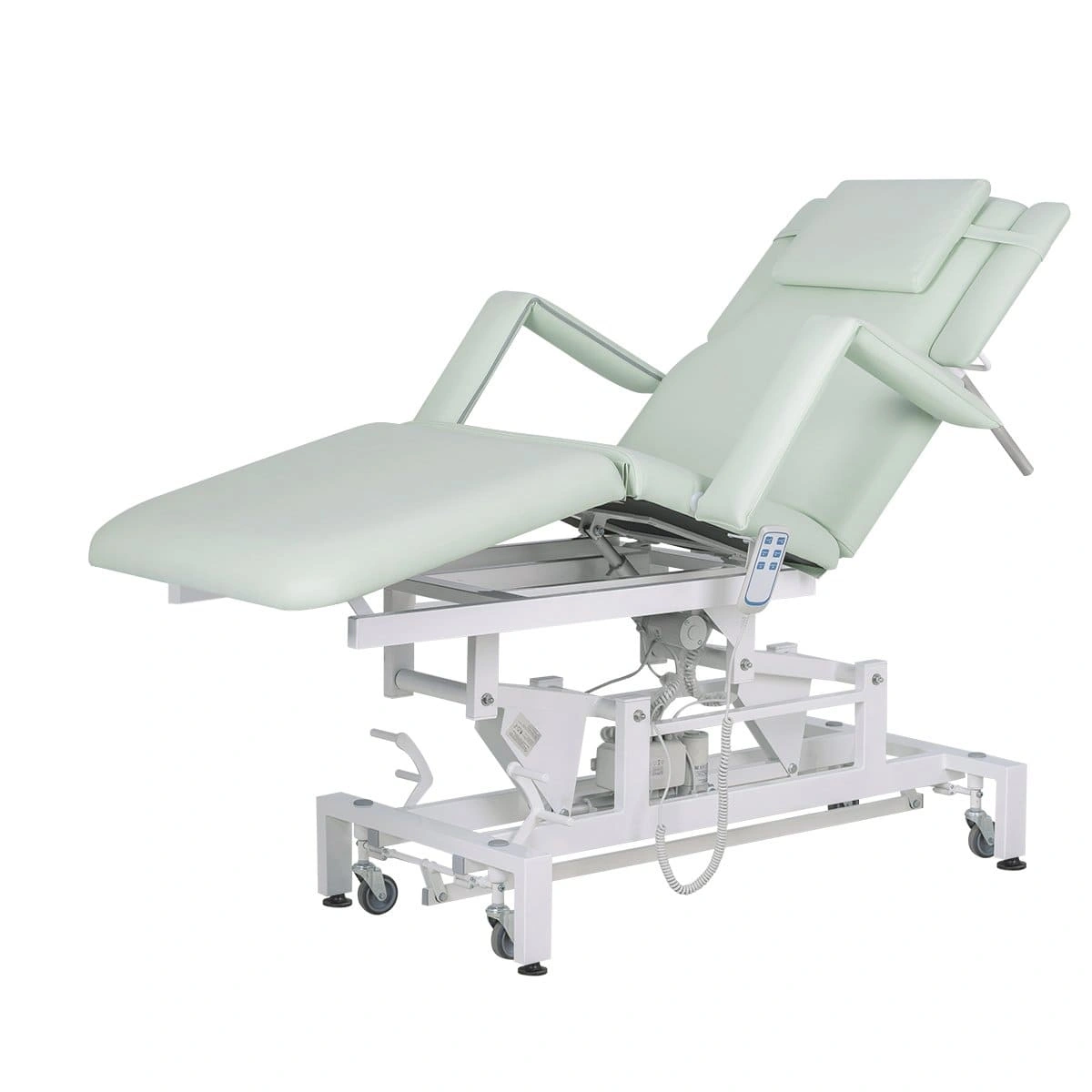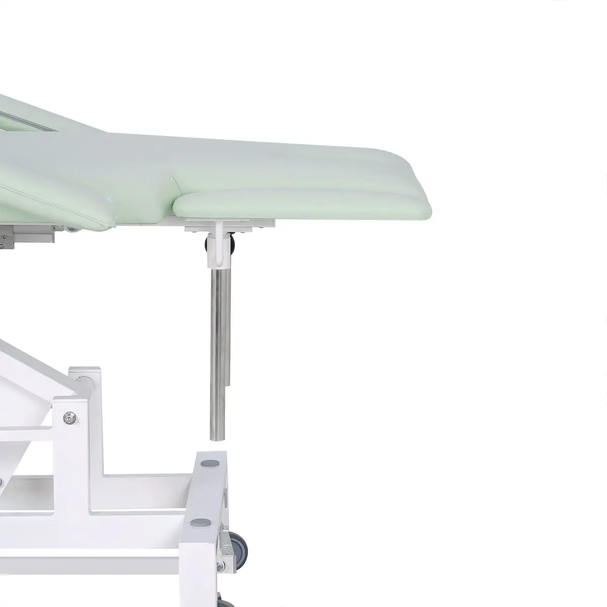 Кушетка массажная МД-849 (Элегия-3А) на колесной базе – это профессиональное оборудование от компании МЭДИСОН. Она разработана для применения в массажном или косметологическом кабинете высокого уровня. Мягкая часть кушетки разделена на три сегмента: сиденье, спинка, элемент для ног. Это значительно повышает комфорт при использовании и обеспечивает необходимую функциональность во время работы. В спинке есть специальный вырез для лица. Для удобного расположения рук по время массажа предусмотрены навесные подлокотники, регулируемые по высоте.