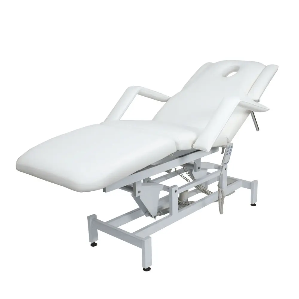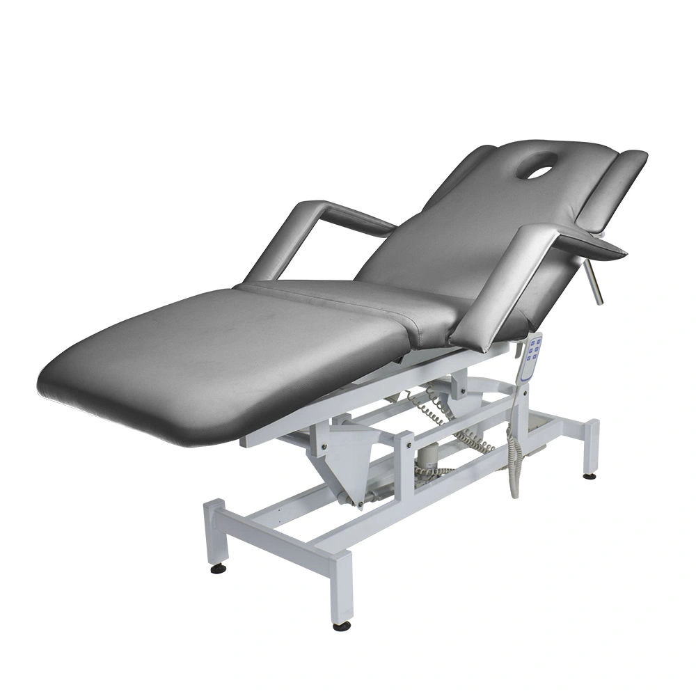 Кушетка массажная МД-849 (Элегия-3А) (электропривод, 3 мотора) – это профессиональное оборудование от компании МЭДИСОН. Она разработана для применения в массажном или косметологическом кабинете высокого уровня. Мягкая часть кушетки разделена на три сегмента: сиденье, спинка, элемент для ног. Это значительно повышает комфорт при использовании и обеспечивает необходимую функциональность во время работы. В спинке есть специальный вырез для лица. Для удобного расположения рук по время массажа предусмотрены навесные подлокотники, регулируемые по высоте.