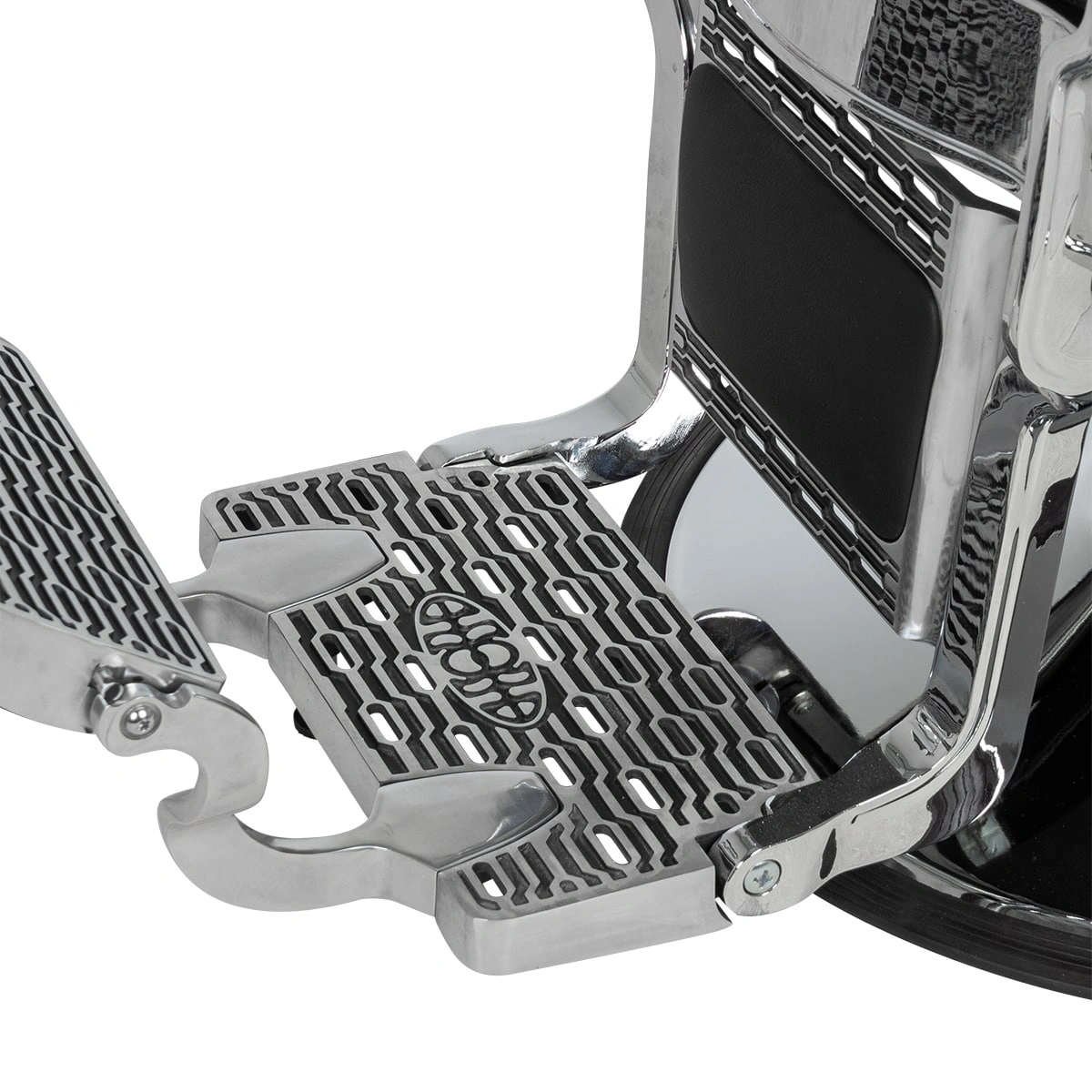 Удобное сидение оснащено широкими подлокотниками для комфорта посетителей. Для поддержания шеи и головы клиента в конструкции предусмотрен мягкий подголовник. Практичная подножка не допустит усталости ног клиентов.