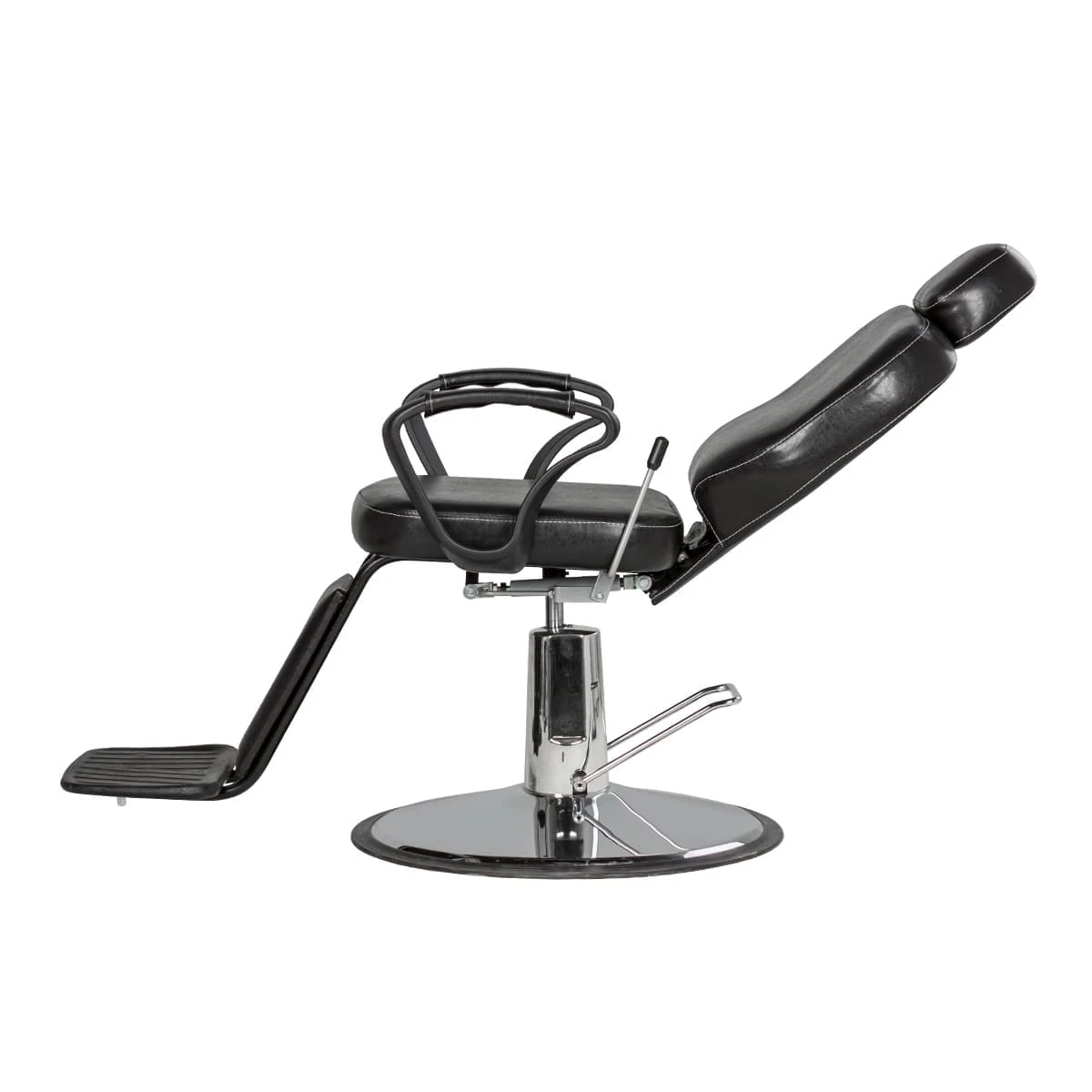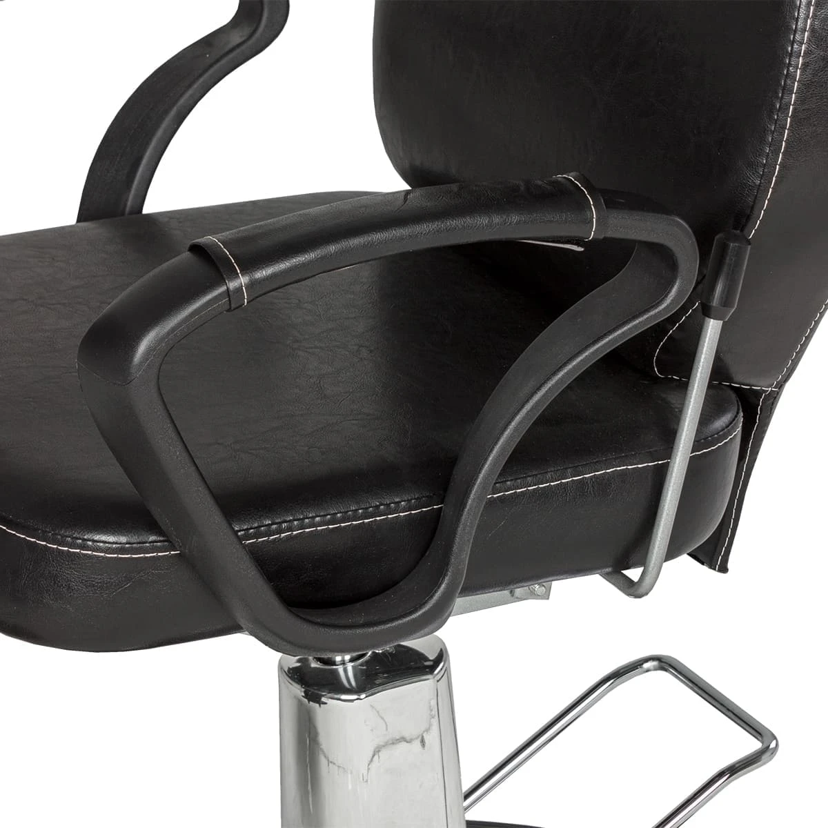 Продуманное дизайнерское решение позволяет оказывать услуги по уходу за волосами и бородой, а также делает кресло barber стильной составляющей интерьера. Для удобного расположения клиента любого роста предусмотрена подножка и выдвижной подголовник. По бокам сиденья установлены эргономичные подлокотники из прочного черного пластика. Подъем кресла осуществляется при помощи надежного гидравлического механизма, а для наклона спинки установлен газ-патрон.