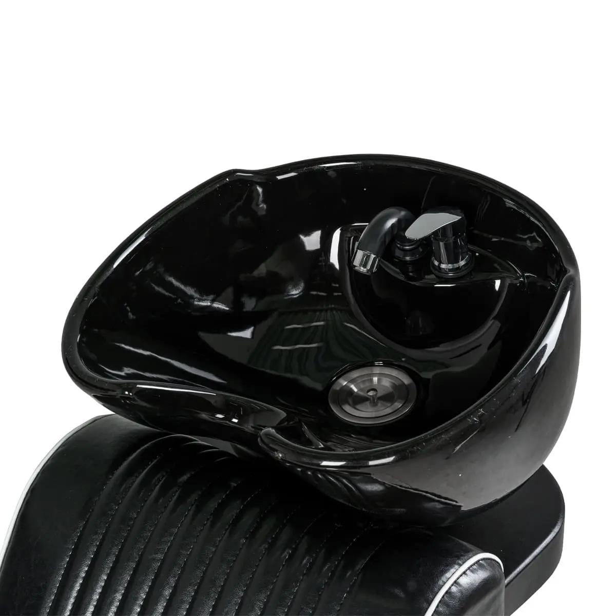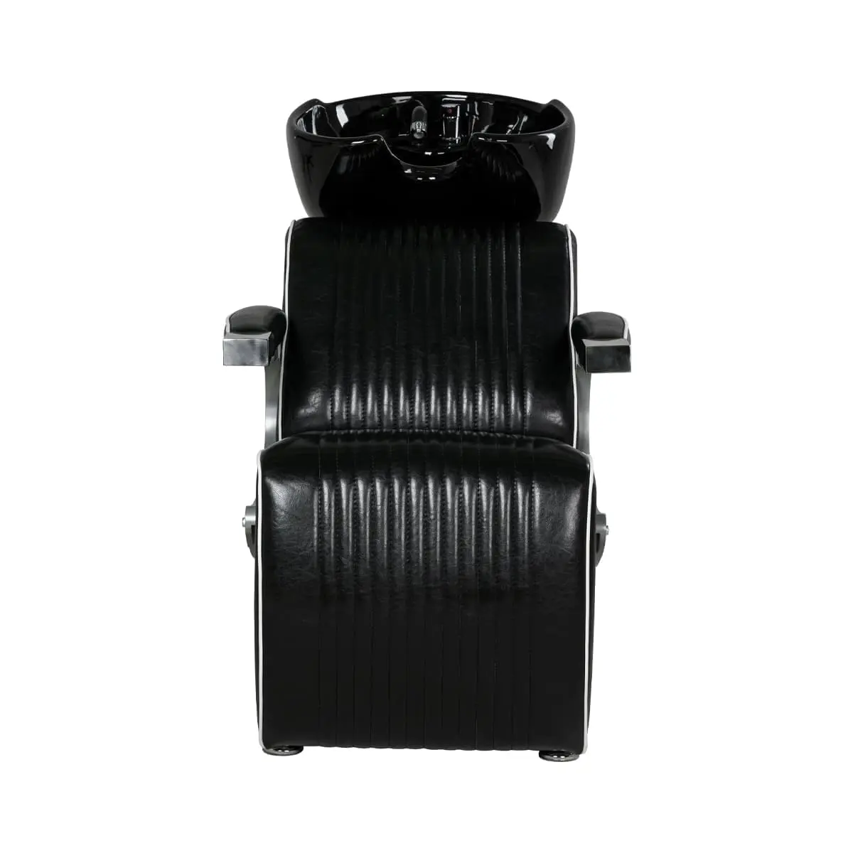Мойка для барбершопа Челленджер отличается стильным дизайном. Оригинальная форма кресла, черная керамическая раковина, обивка из экокожи с рифлением – все это смотрится солидно и стильно. Конструкция мойки максимально продумана для удобства клиента и мастера. Поролоновый наполнитель долго держит форму и не теряет свойств на протяжении всего срока эксплуатации. Экокожа устойчива к воздействию влаги, поэтому ее можно очищать от загрязнений обычной влажной тряпкой.