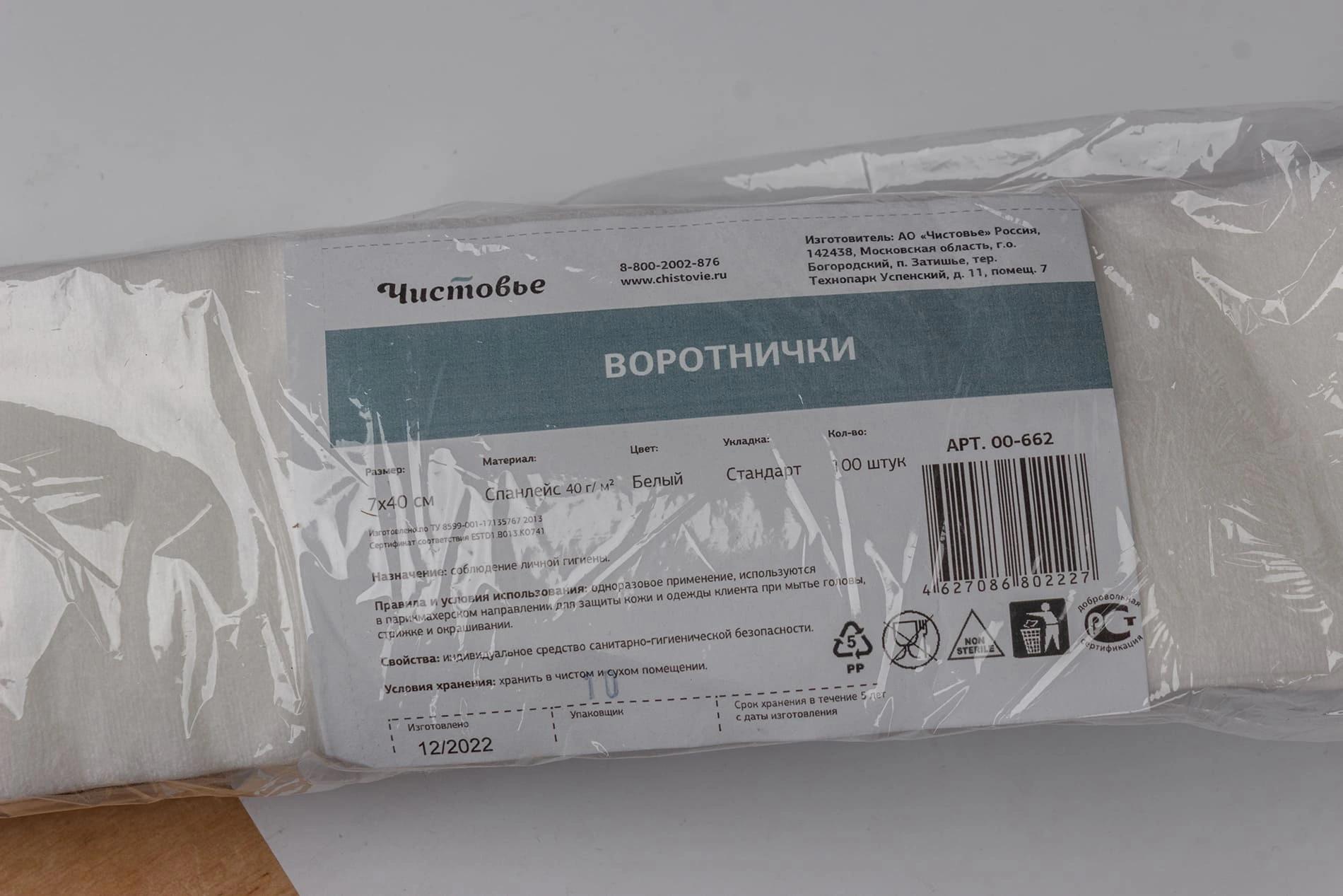 Ширина одного воротничка составляет 70 мм, что гарантирует максимальную защиту кожи. Воротнички бумажные с липучкой изготавливаются из гипоаллергенных материалов, раздражения не вызывают. Они подходят в том числе для чувствительного эпидермиса. После использования утилизируются, как любые другие бытовые отходы.