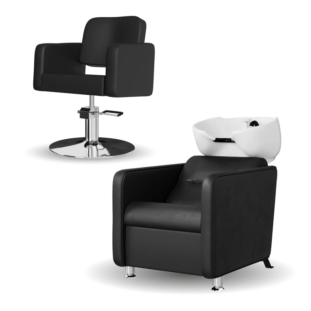 В базовую комплектацию входит глубокая белая керамическая раковина с набором необходимой сантехники. По желанию вы можете выбрать такую же раковину из черной керамики или глубокую, черного или белого цвета. Для индивидуального удобства клиентов наклон раковины регулируется. Универсальная модель, подойдет к любой модели кресла и в любой интерьер.