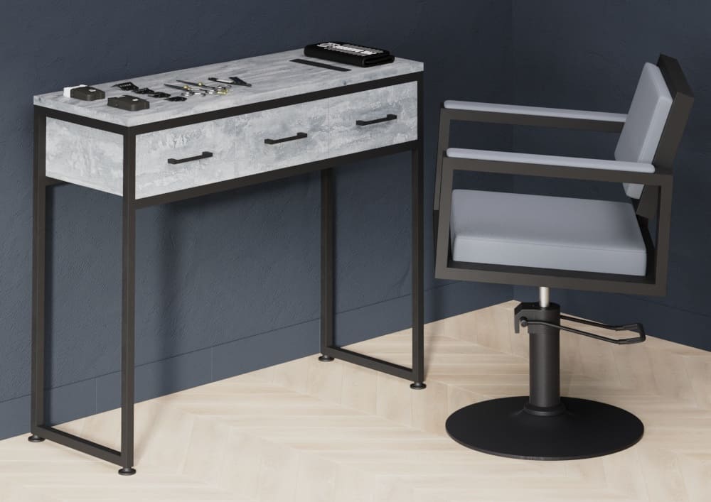 Практичная парикмахерская консоль Марсель с просторной рабочей зоной и тремя вместительными ящиками для хранения. Эргономичный дизайн позволяет удобно расположить инструменты и материалы, обеспечивая комфорт и эффективность работы мастера.