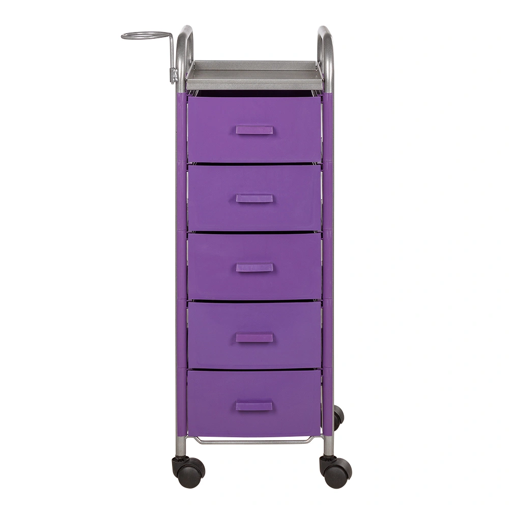 Для принадлежностей в парикмахерской тележке есть пять выдвижных ящиков. Верхняя полка позволит мастеру держать под рукой инструменты, необходимые во время работы с клиентом. На боковине установлен практичный фенодержатель. Вращающиеся колесики обеспечивают плавное и практически бесшумное перемещение оборудования в пределах рабочей зоны.