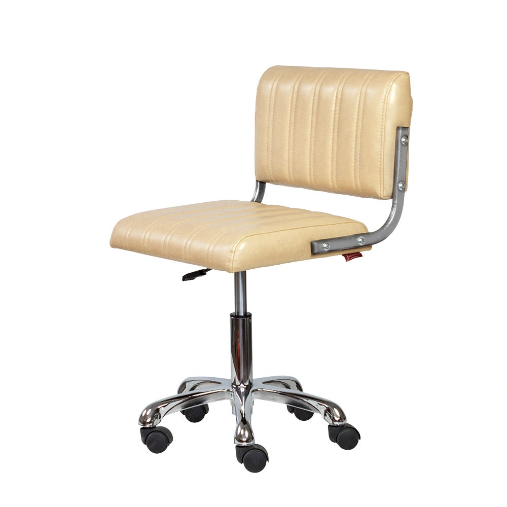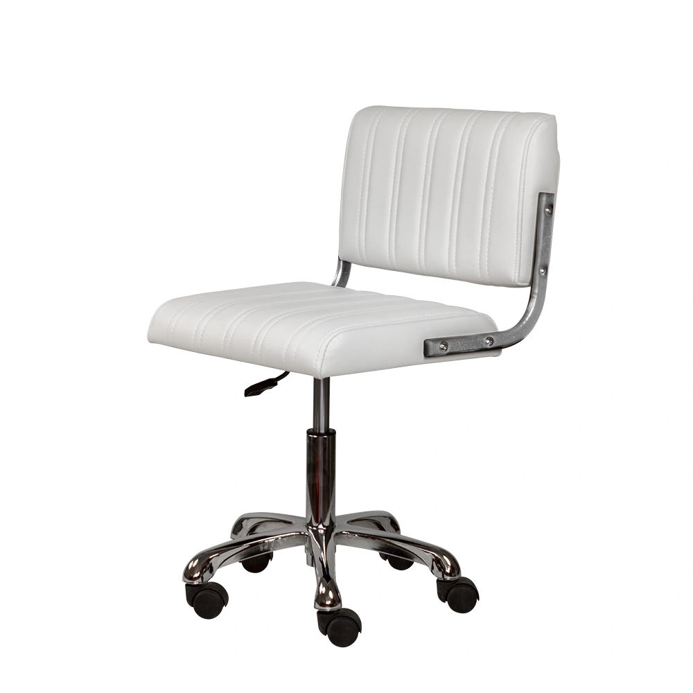 Обивка стула мастера – экокожа. Материал прочный, гладкий и приятный на ощупь. За счет своей структуры экокожа устойчива к истиранию и царапинам. Благодаря широкому выбору цветовых решений можно подобрать стул мастера для любого интерьера салона красоты. В качестве наполнителя использован эластичный поролон, не оставляющий вмятин на поверхности после использования.