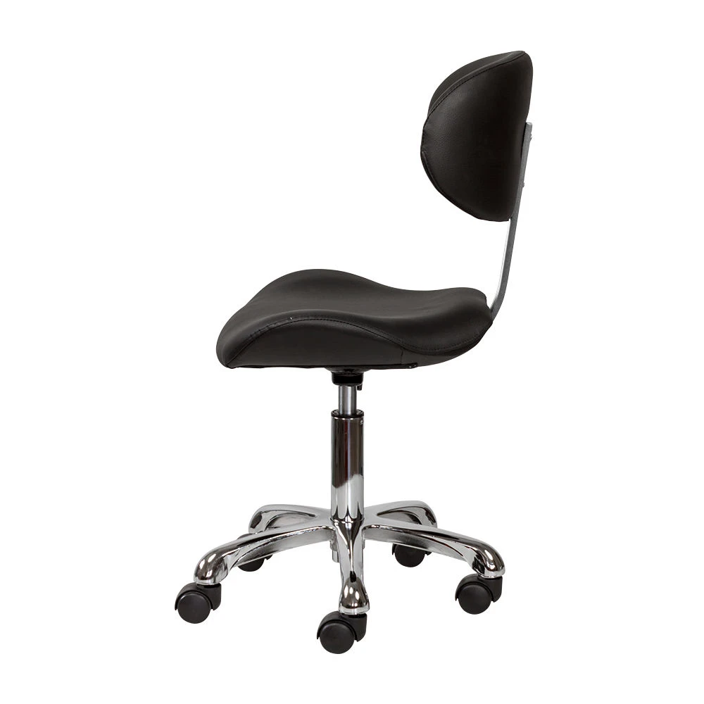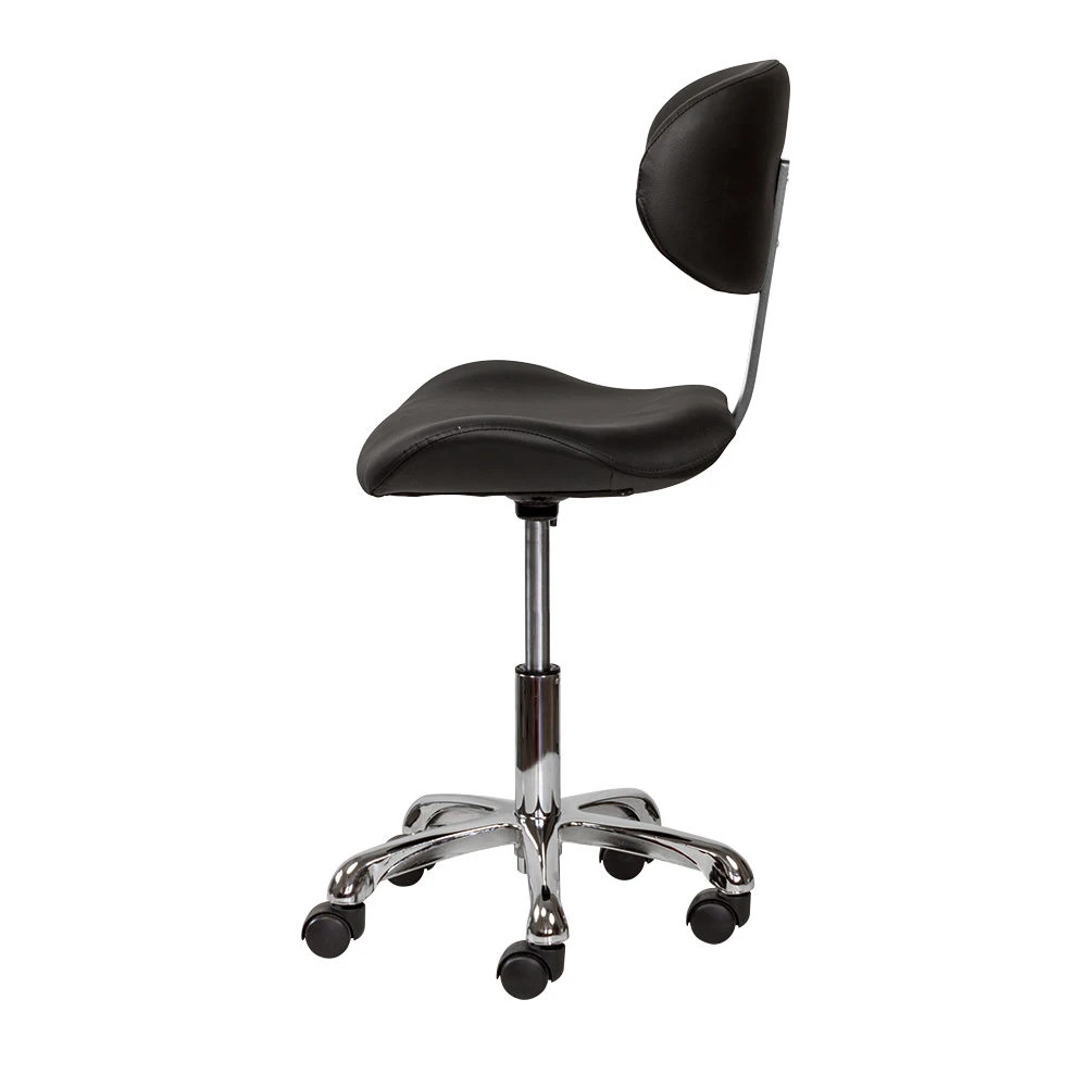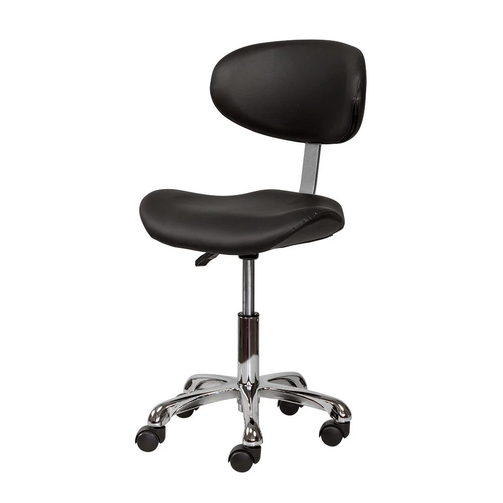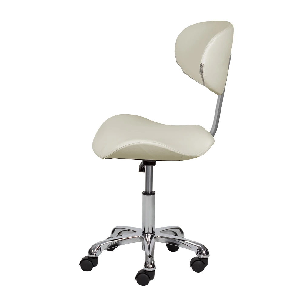Благодаря сидению в форме седла уменьшается нагрузка на позвоночник и межпозвоночные диски, а также отсутствует давление на заднюю поверхность бедер. Удобная спинка отвечает за поддержку правильной осанки. С таким стулом для мастера значительно снимется напряжение в спине и появится возможность отдохнуть во время напряженного рабочего дня. Благодаря маневренным колесам стул можно перемещать в любую точку салона, не вставая с него. Надежный пневматический подъемник поможет выбрать оптимальную высоту сидения для комфортной работы.