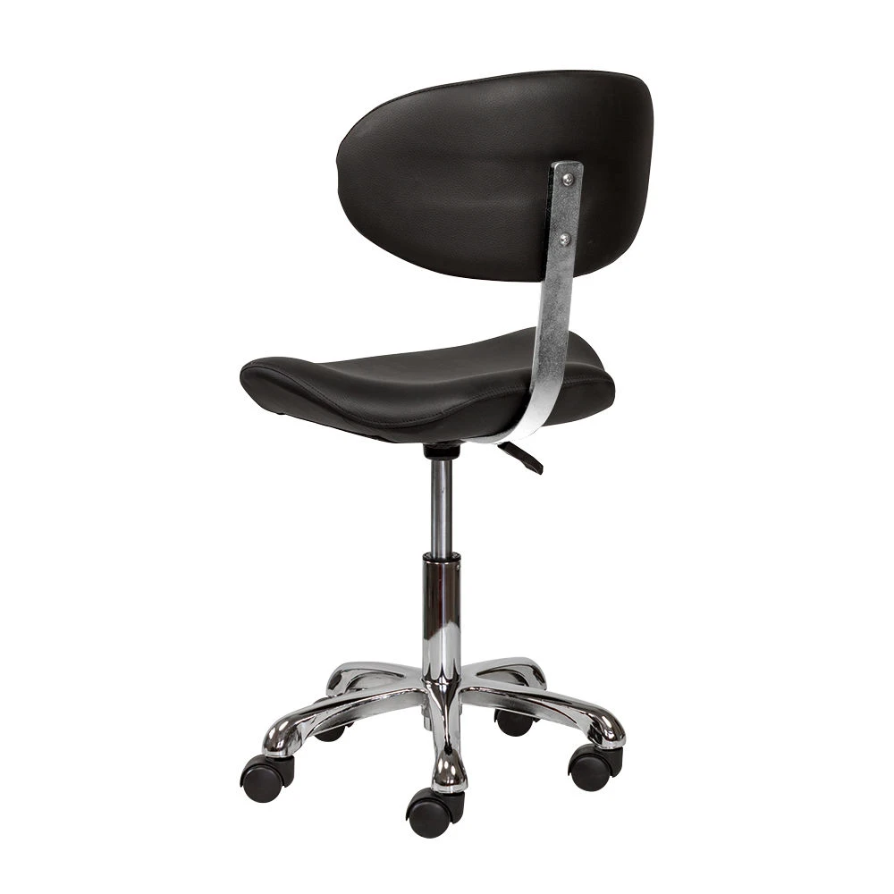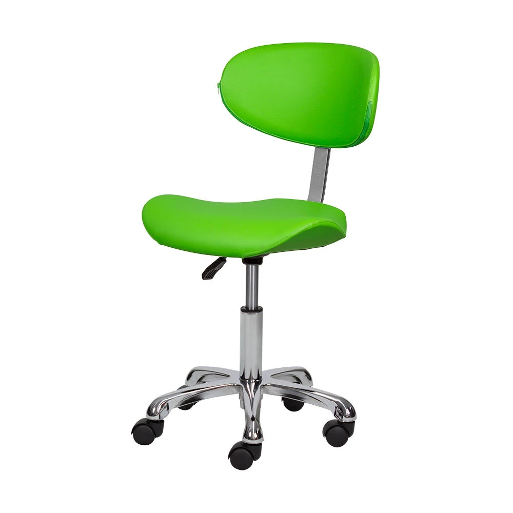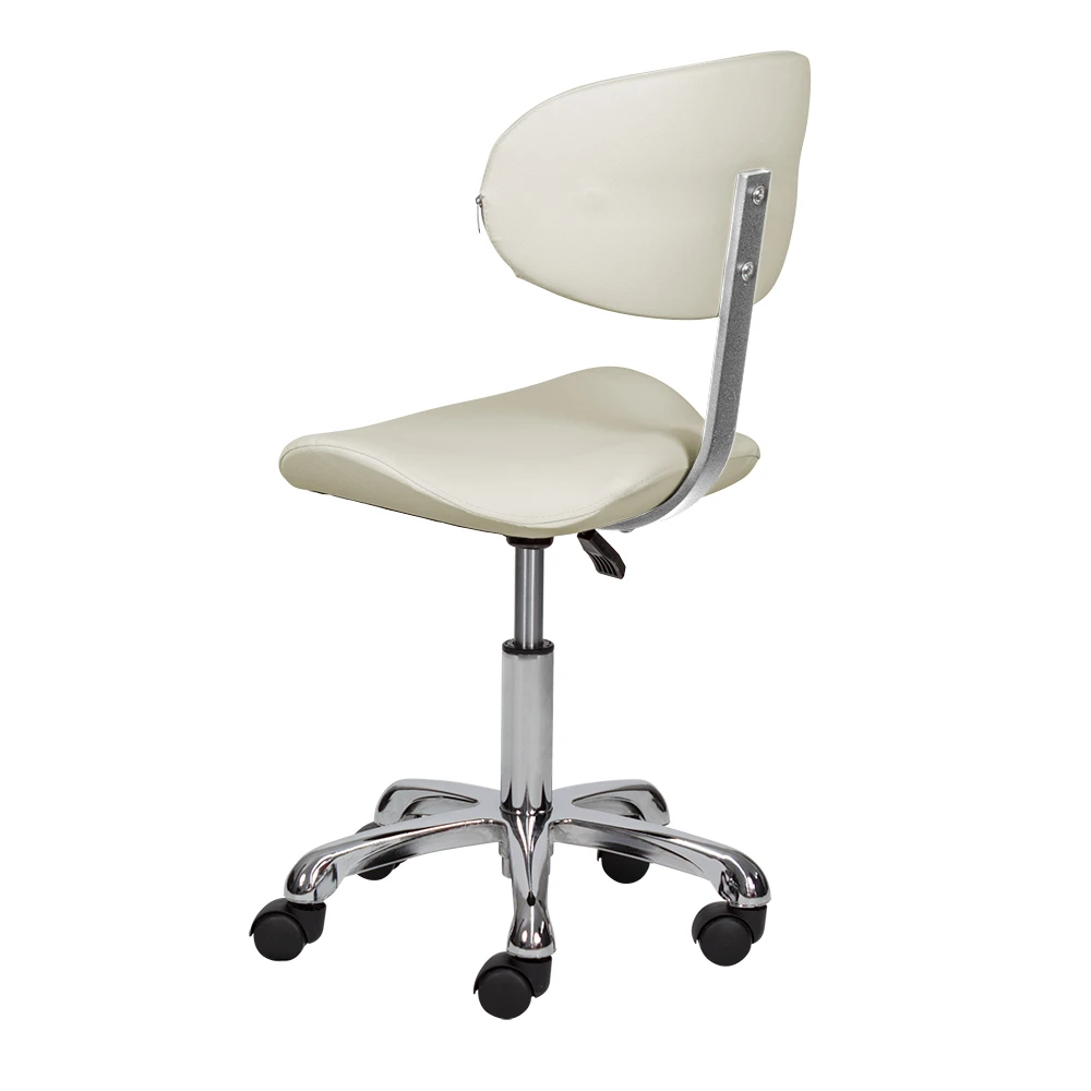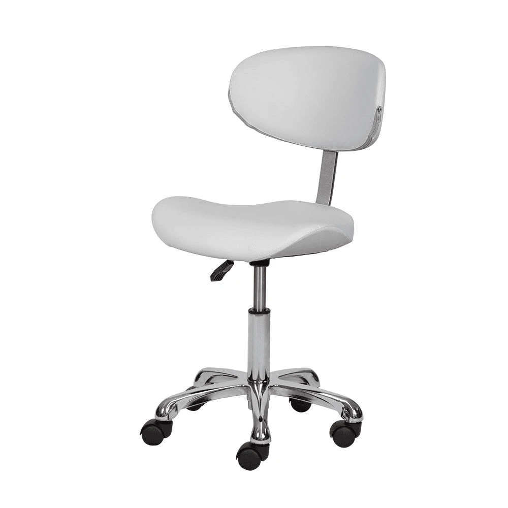 Благодаря сидению в форме седла уменьшается нагрузка на позвоночник и межпозвоночные диски, а также отсутствует давление на заднюю поверхность бедер. Удобная спинка отвечает за поддержку правильной осанки. С таким стулом для мастера значительно снимется напряжение в спине и появится возможность отдохнуть во время напряженного рабочего дня. Благодаря маневренным колесам стул можно перемещать в любую точку салона, не вставая с него. Надежный пневматический подъемник поможет выбрать оптимальную высоту сидения для комфортной работы.