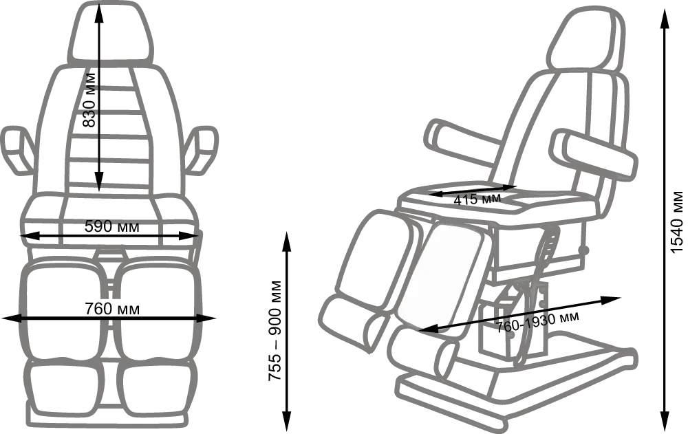 Педикюрное кресло Сириус-10 (Элегия-3), магазин МЭДИСОН предлагает с такими размерами: