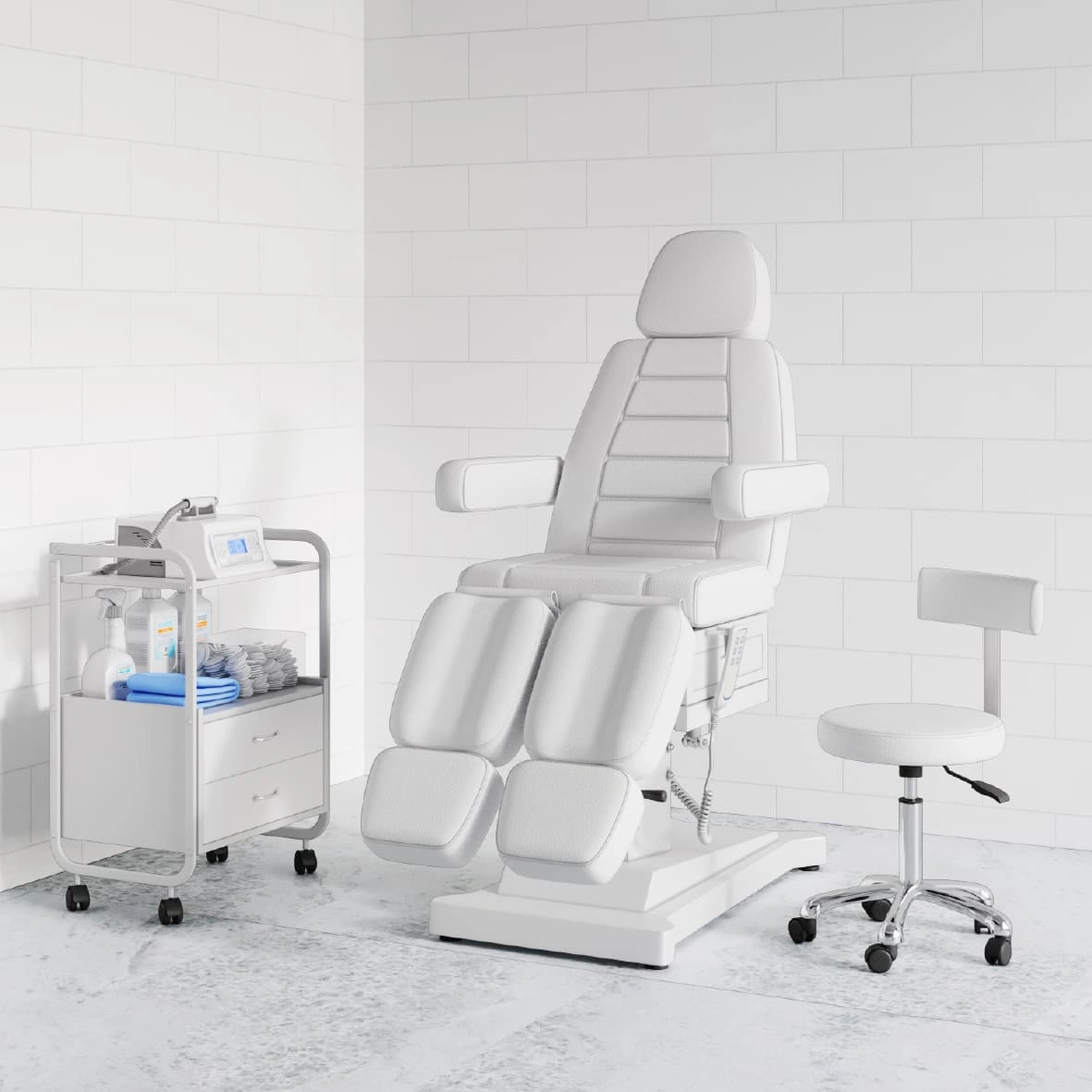 Педикюрное кресло Сириус-10 (Элегия-3) разработано специалистами нашей компании для обустройства кабинетов мастеров по педикюру и других специалистов. В нем будет комфортно клиентам в процессе различных салонных процедур (выполнение педикюра, косметические процедуры, покраска и коррекция бровей, наращивание ресниц и прочие). Регулировки электропривода позволяют без дополнительных усилий менять положение отдельных элементов и осуществлять подъем кресла. Ножки регулируются механически, подпятники выдвигаются и позволяют увеличить длину кресла.