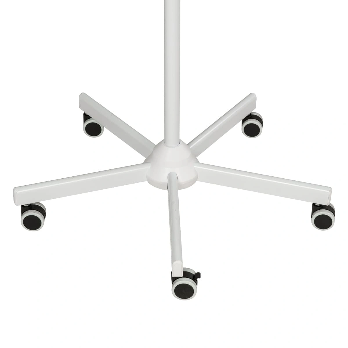 Стойка имеет металлическую конструкцию на колесиках и подходит для оснащения медицинских и косметологических кабинетов, а также ювелирных и часовых мастерских. Напольная стойка для вытяжки 4blanc PRO оснащена крестовиной из 5 лучей, что обеспечивает высокую устойчивость и безопасность в работе, а также фиксатором на колесах, что позволяет закрепить штатив напольный в одном положении без опрокидывания.