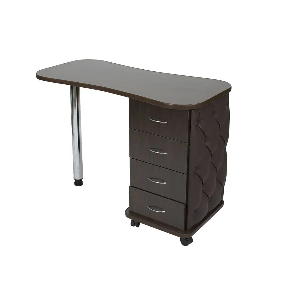 Комплектация: столешница, тумба, четыре выдвижных ящика, стальная ножка, колеса.