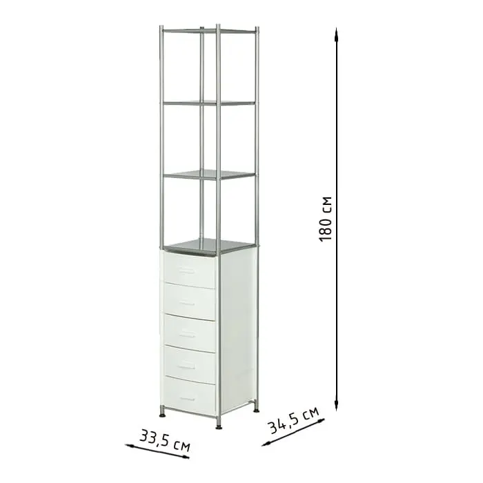 Комплектация: металлический каркас, 5 ящиков, 4 открытые полки.